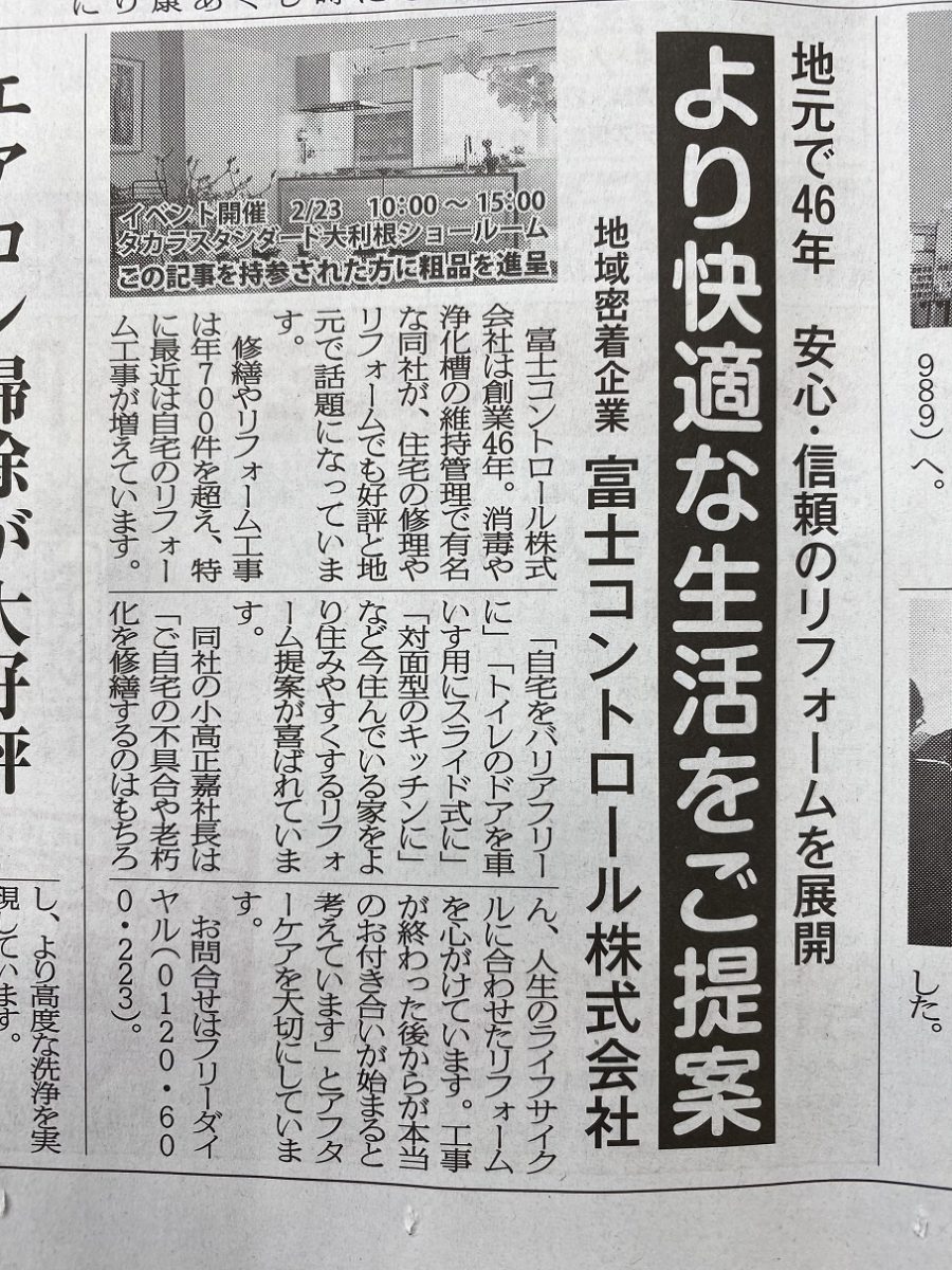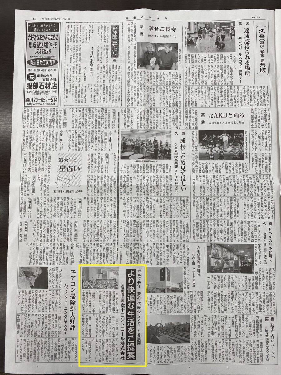 本日の読売新聞を購読しておられる方で、さらに弊社周辺にお住まいの方には、新聞の広告と一緒にローカル版の新聞が折り込まれていると思います。