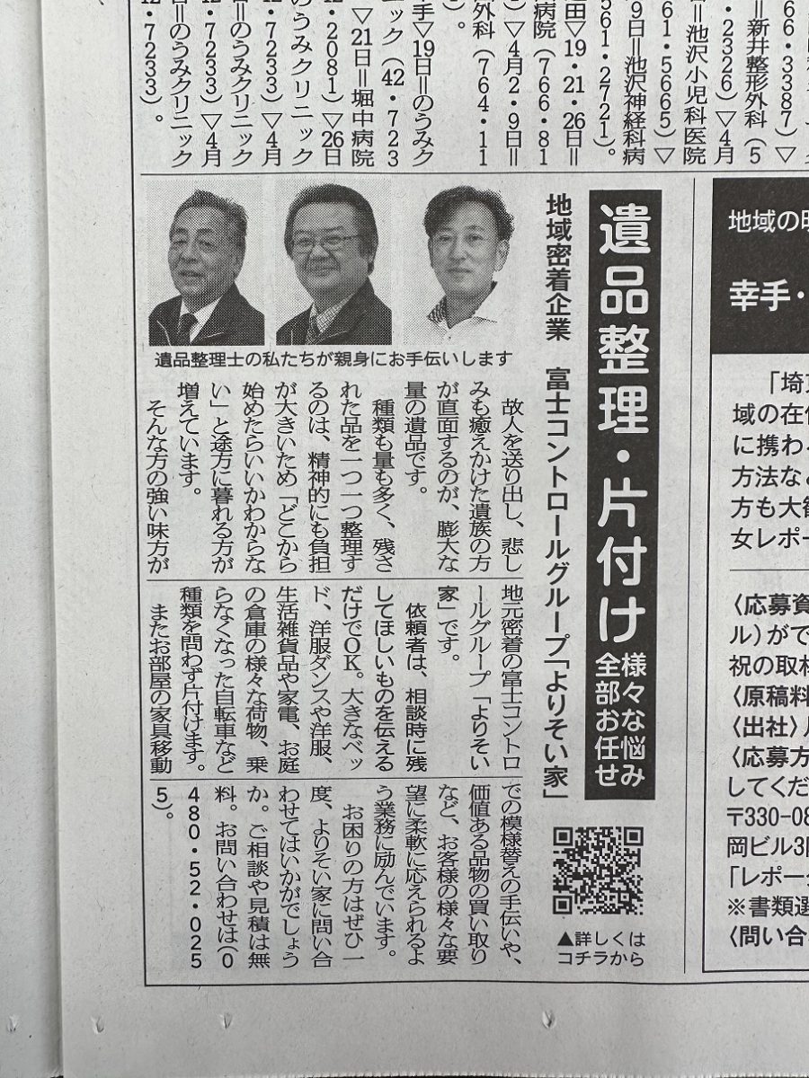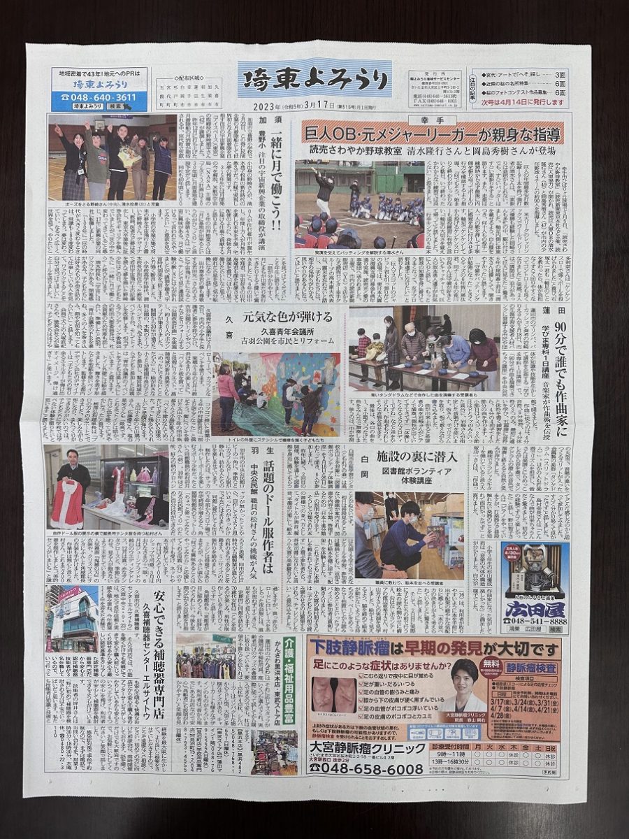 さて、今回も弊社地域内で発行されている読売新聞の別紙、『埼東よみうり』さんに、弊社が紹介されています。