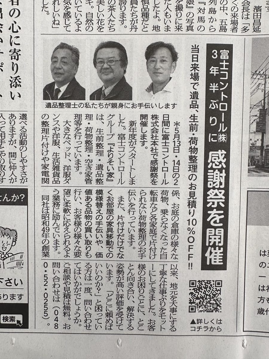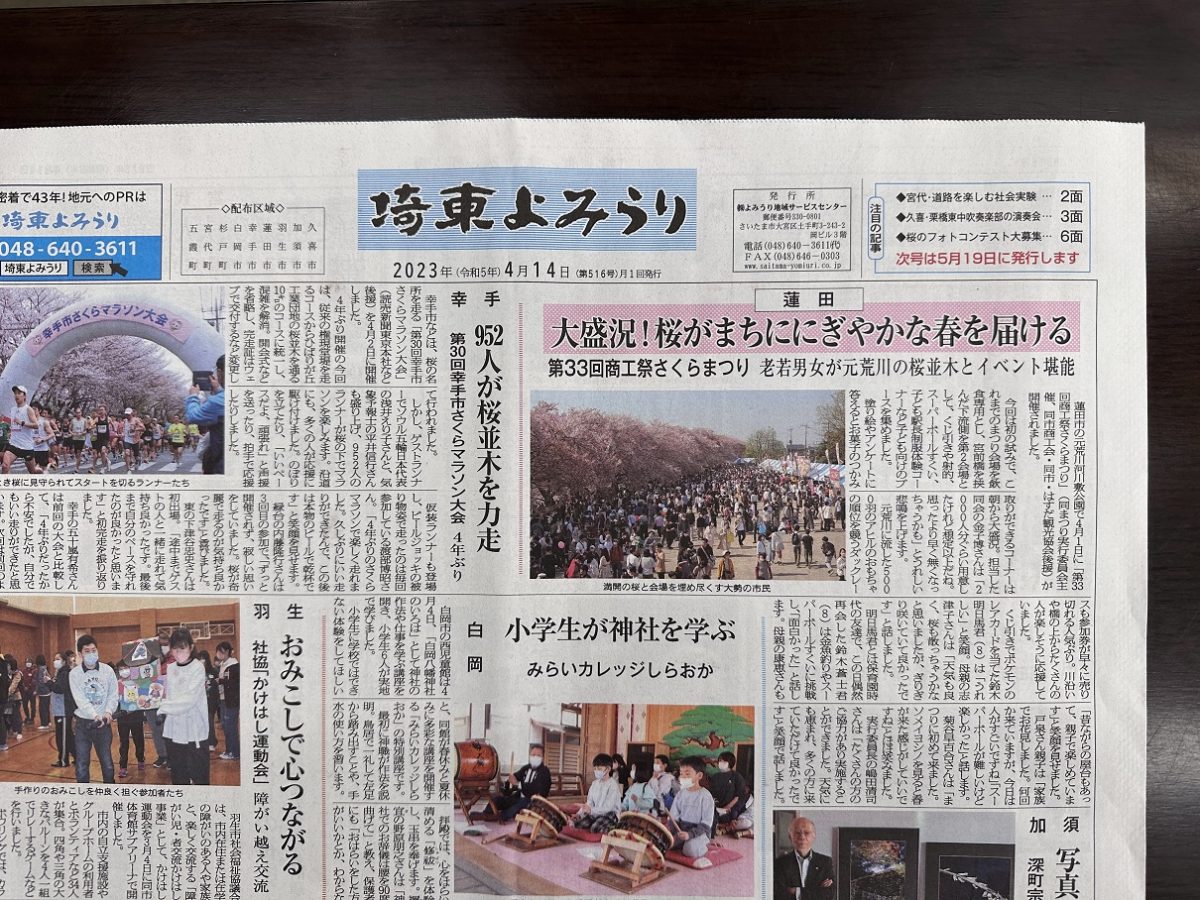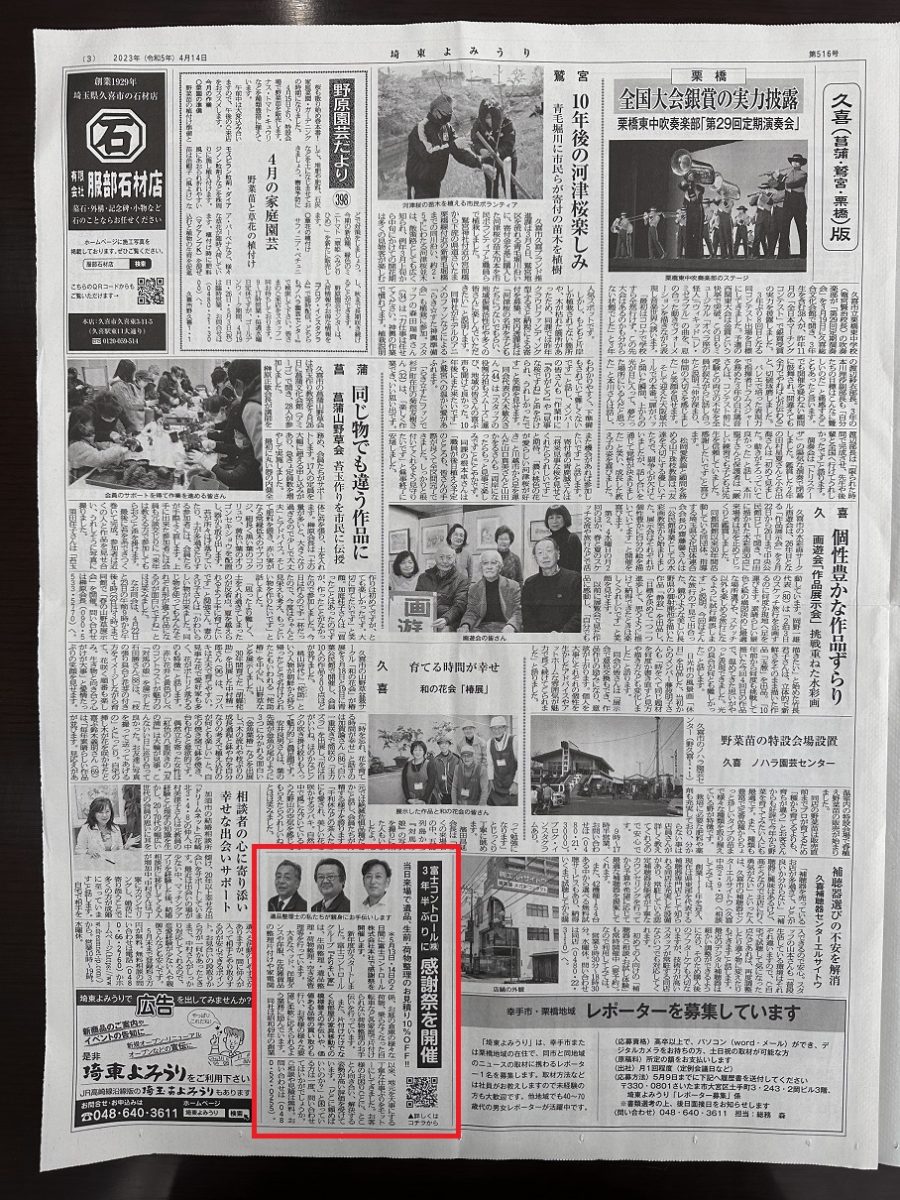 さて、今回も弊社地域内で発行されている読売新聞の別紙、『埼東よみうり』さんに、弊社が紹介されています。