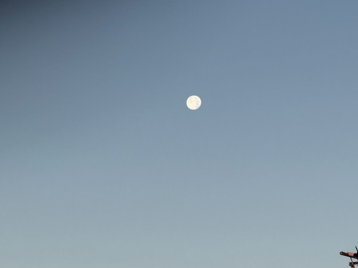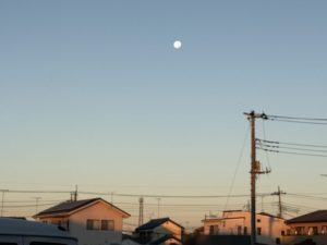 今日の朝は寒すぎるせいか、朝日に照らされた月が非常にきれいに見えました。