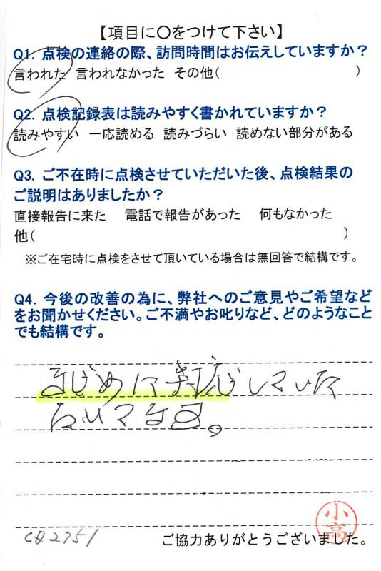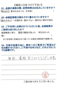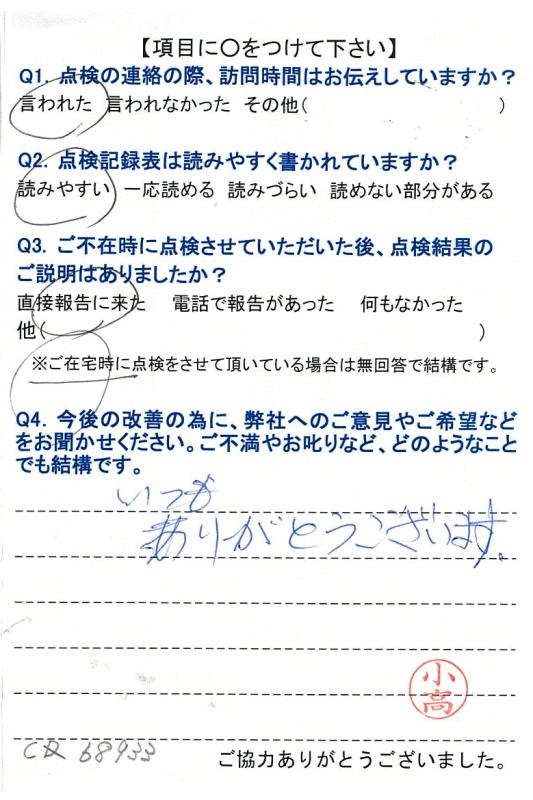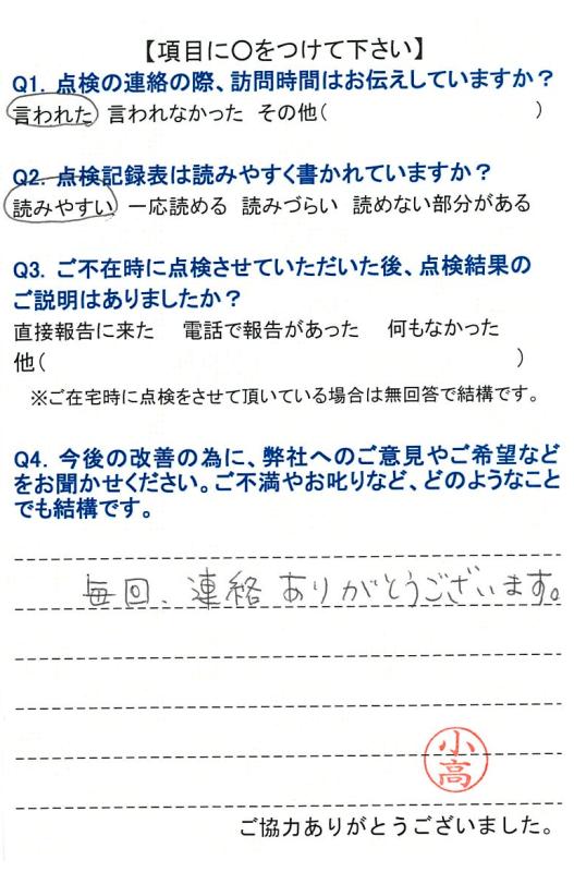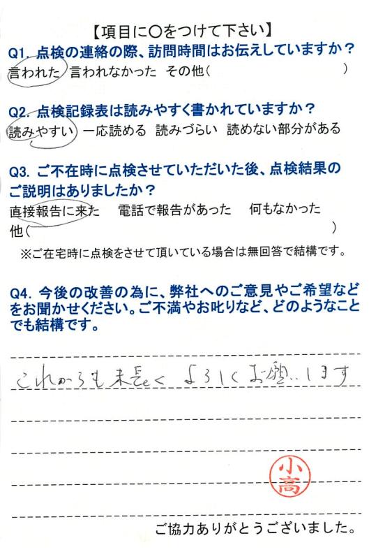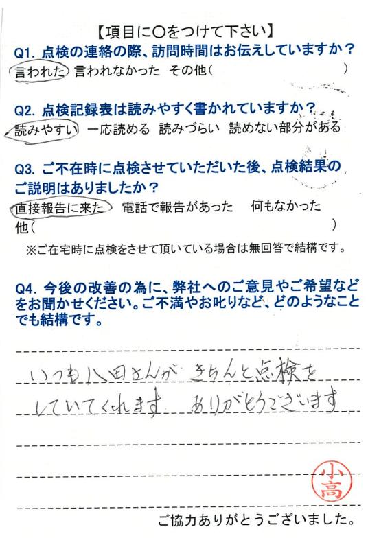 いつも八田さんがきちんと点検をしてくれます。ありがとうございます。
