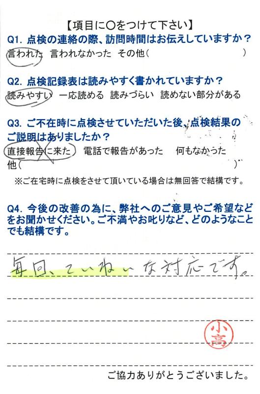 毎回丁寧な対応です。
