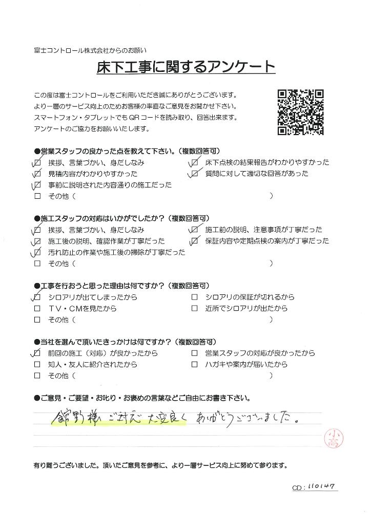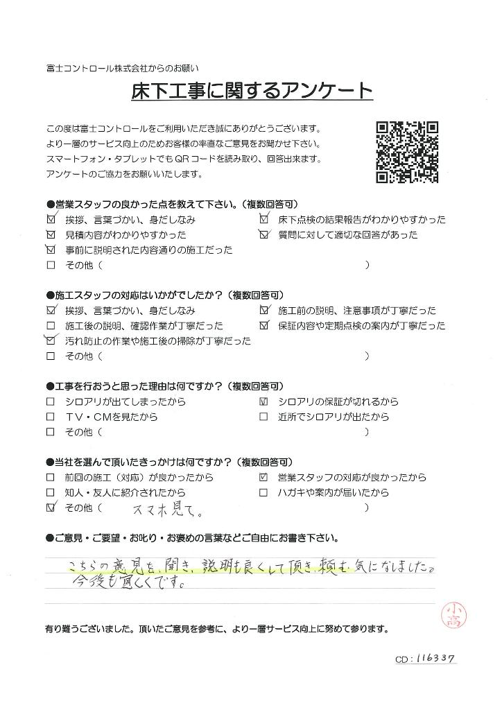 【ご意見】 こちらの意見を聞き、説明も良くして頂き、頼む気になりました。今後も宜しくです。